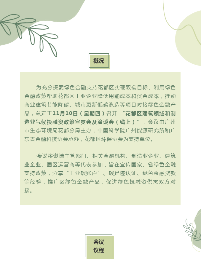 【明日活动预告】广州花都区建筑领域和制造业气候投融资政策宣贯会及洽谈会(线上),海悦公司董事长作为技术提供代表参加会议圆桌论坛并发言